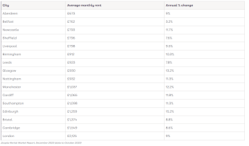 Northern Ireland, Scotland and Yorkshire and the Humber all sit at the cheaper end of the scale too, with rents averaging less than £800 per month.